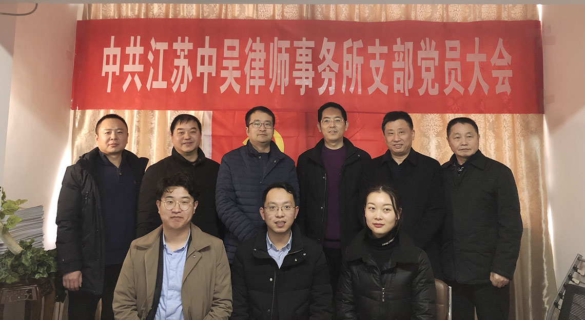 2018年12月29日下午,中共江苏中吴律师事务所支部成立大会暨党员第一次会议在本所顺利召开,武进区司法局政治处主任彭旭飞、局党总支委员尹立强、王明锋以及江苏中吴律师事务所主任丁建忠出席了此次会议。